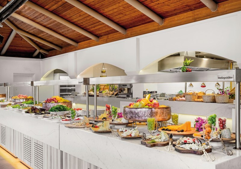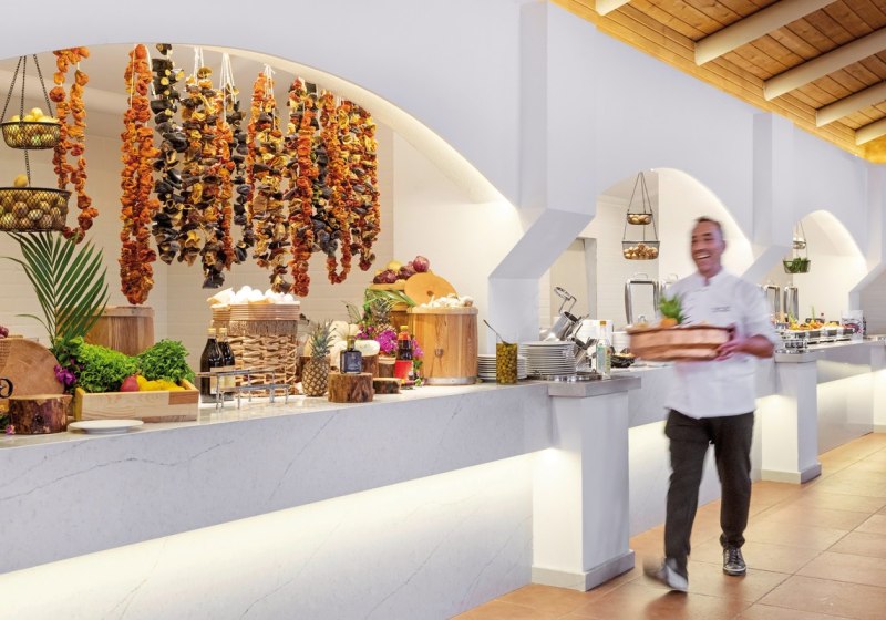 Ihr startet mit Frühstück und wählt je nach Paket Halbpension, Vollpension oder All‑Inclusive. Zentral ist das Buffetrestaurant mit Terrasse; zwei À‑la‑carte‑Restaurants setzen Akzente. Kindermenüs und Snacks ergänzen den Tagesrhythmus. Highlight: Buffet mit Terrasse und zwei À‑la‑carte‑Alternativen.