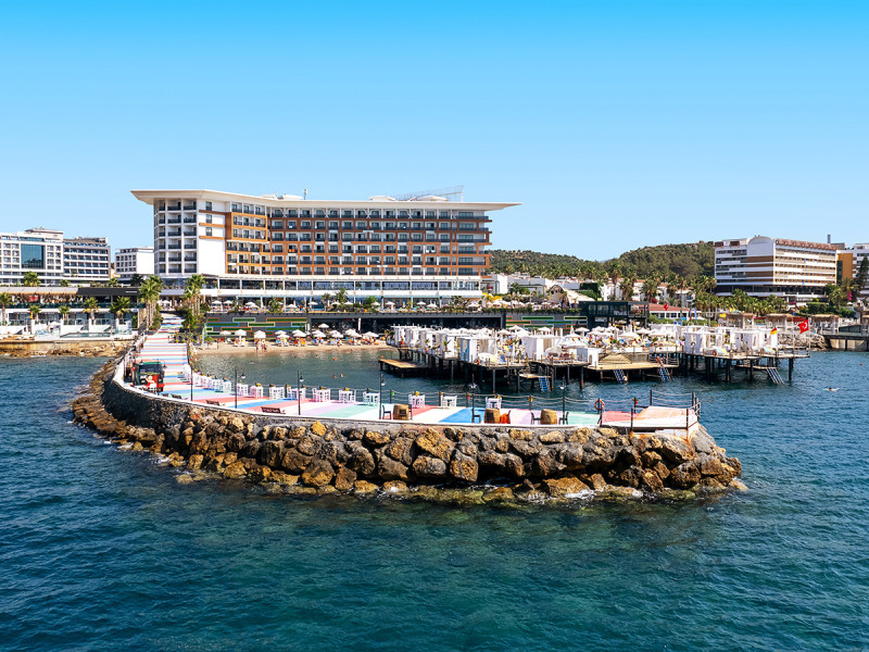 Im frisch renovierten Jahrgang 2019 empfängt Euch Mary Hotel Alanya als offiziell bewertetes 5‑Sterne‑Designhotel direkt am eigenen Sand‑/Kiesstrand mit teils felsigen Partien. Die Anlage wirkt klar strukturiert und lebendig, mit großzügigen Wasserflächen, kurzen Wegen und WLAN in allen Bereichen. Familien, Paare, junge Leute und Geschäftsreisende finden stimmige Angebote. Highlight: Direkte Strandlage mit reserviertem Abschnitt für entspannte Strandtage.