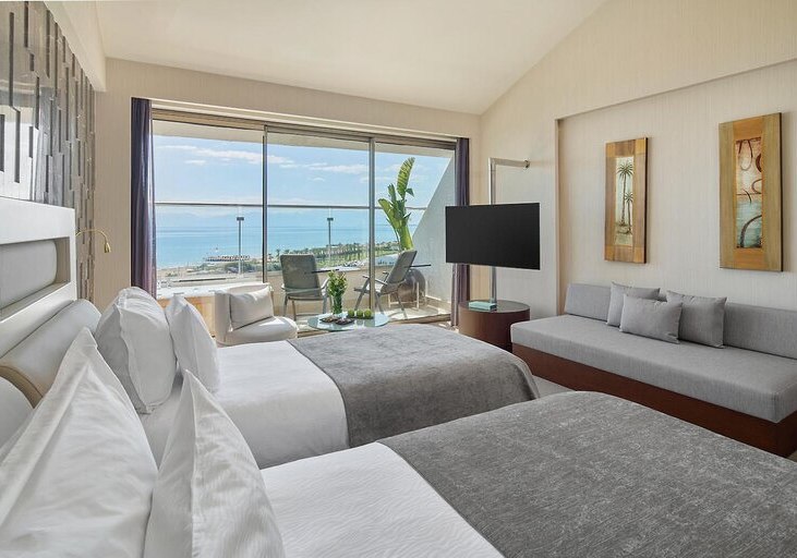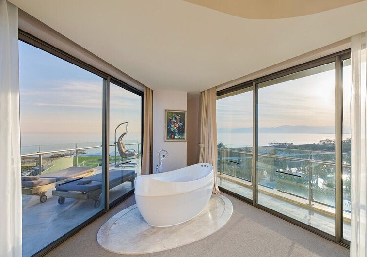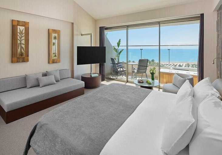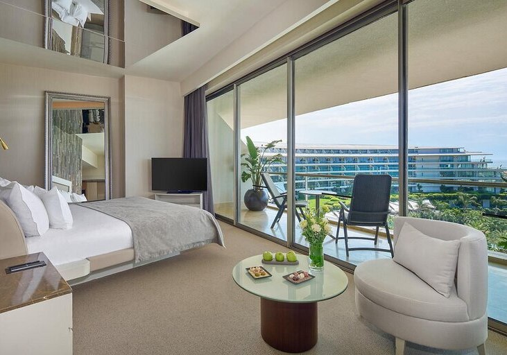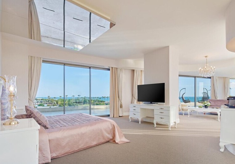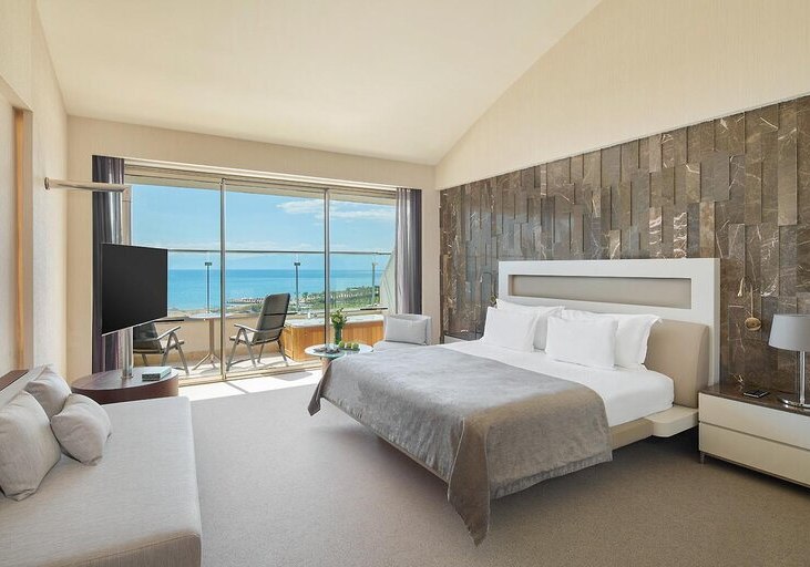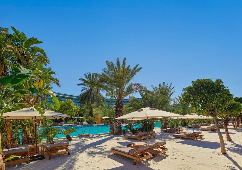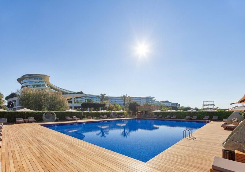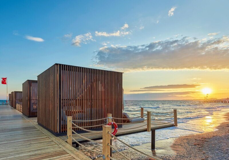 Im Maxx Royal Belek Golf Resort trefft Ihr auf ein weitläufiges Resort direkt am Sandstrand von Belek, mit Blick auf Gärten, Pools und die Bühne für Euren stilvollen Strandtag. Familien, Aktivreisende und Golffans fühlen sich hier gleichermaßen abgeholt, denn Wasserrutschen, Kinosaal und eigener Golfplatz schaffen klare Schwerpunkte. Highlight: Strandresort mit Golf. Direkter Strandzugang und Golfplatz nur Schritte entfernt.