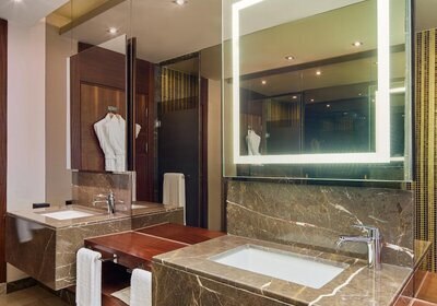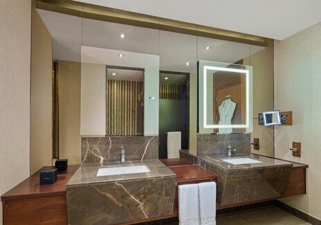Für Service und Komfort sorgen Rezeption, Lobbybar, Minimarkt, Shops sowie Wäsche- und Zimmerservice. Konferenzbereiche mit 27 Räumen unterstreichen die Business-Tauglichkeit. EV-Ladestationen und Einparkservice erleichtern die Anreise. Highlight: Klare Infrastruktur. Vom Shop bis Konferenzraum ist vieles vor Ort.