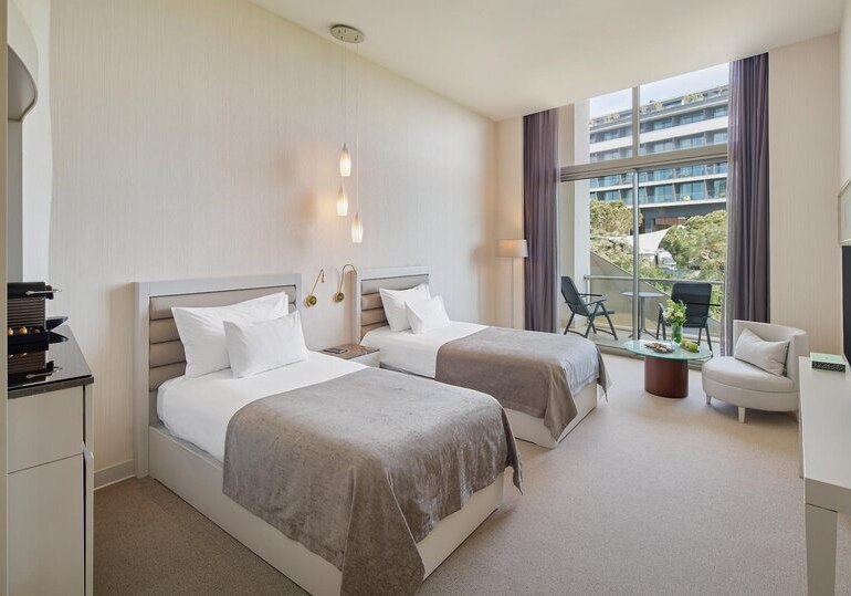 Zwischen Wasserpark, Patisserie und Bars wechselt Ihr mühelos vom lebendigen Tag in entspannte Abende mit Live-Musik oder Kino. Die Atmosphäre wirkt großzügig, modern und serviceorientiert, getragen von durchdachter Infrastruktur und kostenlosem WLAN im gesamten Hotel. Highlight: Klare Zielgruppenansprache. Familien, Sportbegeisterte und Geschäftsreisende finden passgenaue Angebote.