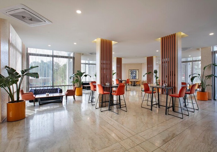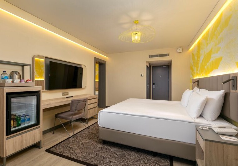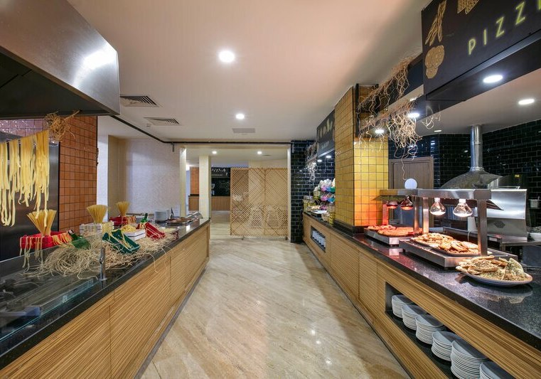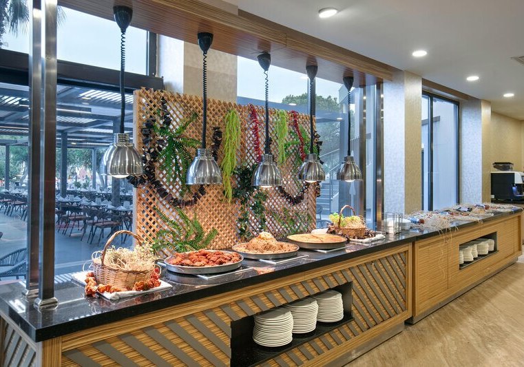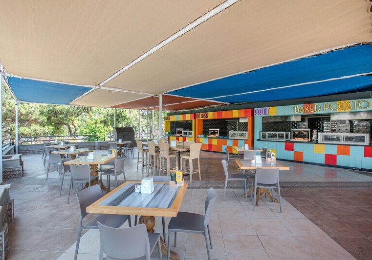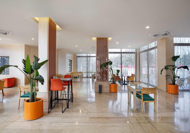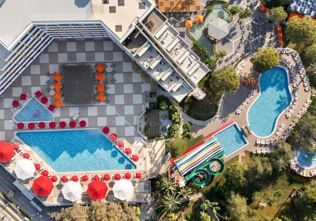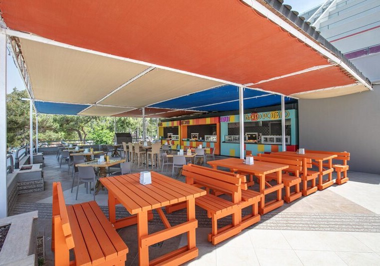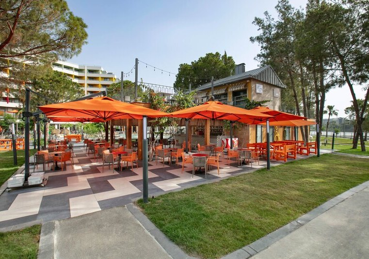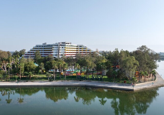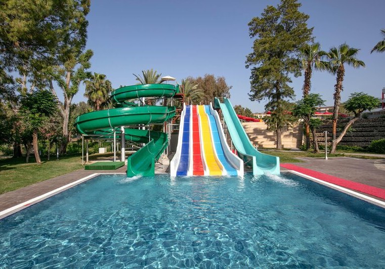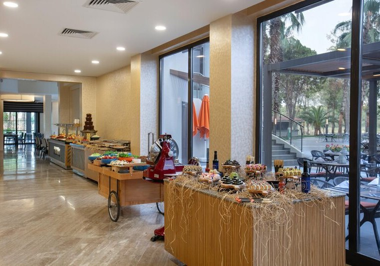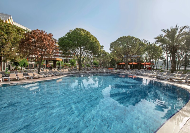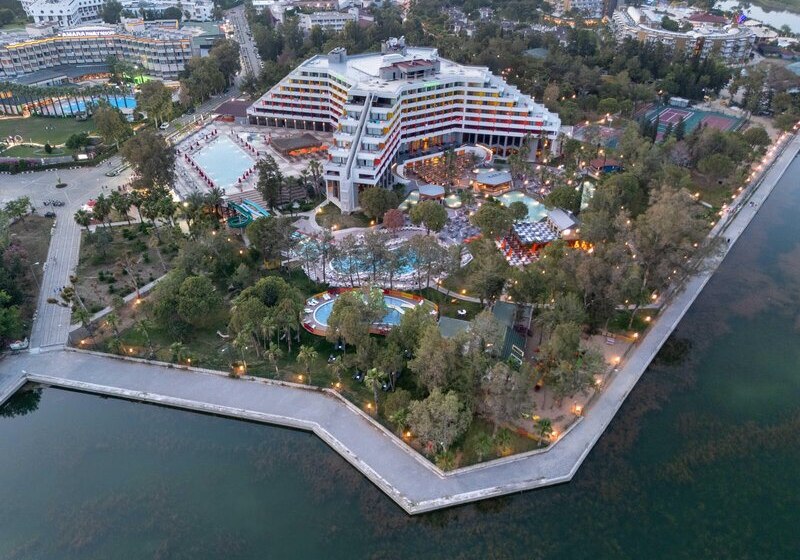 Im Megasaray Resort Side wohnt Ihr in einem Resort, das seine Anlage mit Pools, Rutschen und ruhigen Grünflächen strukturiert. Ihr startet den Tag mit kurzen Wegen, vernetzt durch kostenloses WLAN in der gesamten Anlage. Die Atmosphäre wirkt lebendig durch Animation, Abendshows und Livemusik, zugleich geordnet mit klaren Bereichen für Familien und Paare.