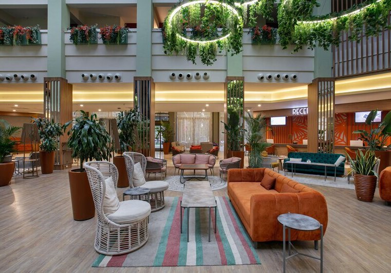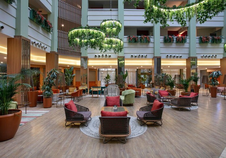 Die öffentliche Bereiche verbinden Funktion und Komfort: Rezeption mit Lobbybar, Konferenzraum und kostenfreies WLAN in der ganzen Anlage. Shops und Friseursalon liegen ebenso vor Ort wie ein Hallenbad. Im Außenbereich erwarten Euch Süßwasserpools, Rutschen, Kinderbecken, Sonnenterrasse und Liegewiese.