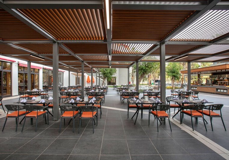 - Terrassenplatz: Hauptrestaurant mit Terrasse für luftige Frühstücke und Dinner.