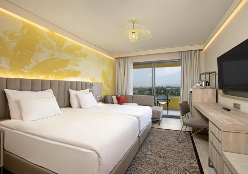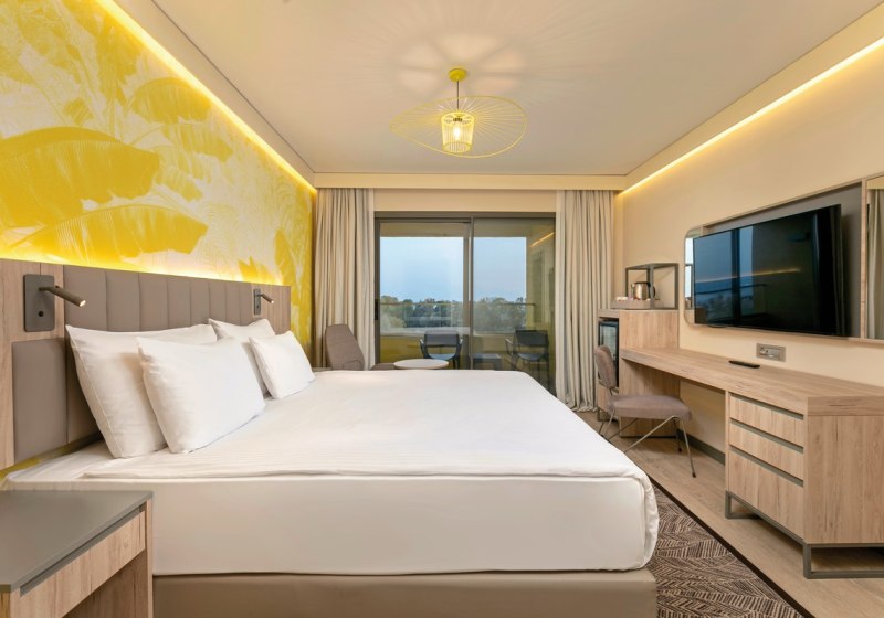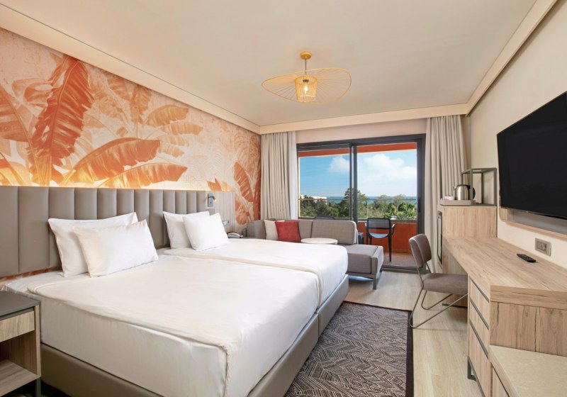 Die Doppelzimmer (ca. 22 m²) sind mit Dusche, Föhn, Slipper, zentraler Klimaanlage, Minibar, Wasserkocher mit Kaffee-/Tee-Set, LCD-Sat-TV mit Musikkanal, AirPlay, WLAN, Safe, Teppichboden und Balkon ausgestattet. Meerblick ist buchbar. Komfort-Doppelzimmer bieten zusätzlich einen Garten- und Seeblick sowie ein Doppelbett plus Zusatzbett.