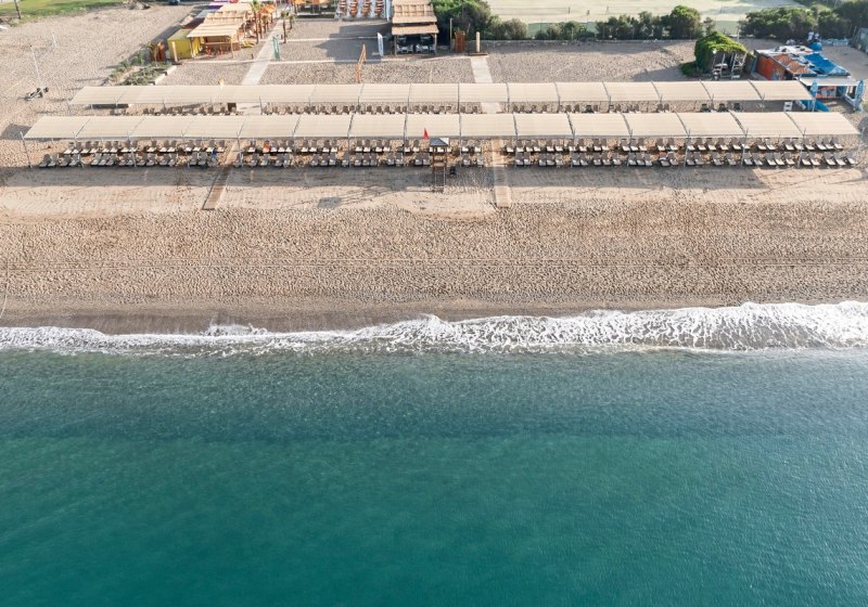 Ihr residiert in Side Titreyengöl, rund 250 Meter vom Kies-/Sandstrand entfernt. Der Weg führt über eine Promenade entlang eines Sees. Das historische Zentrum von Side erreicht Ihr nach etwa drei Kilometern; der nächste See liegt bei etwa 300 Metern, der Wald in rund 700 Metern, öffentlicher Verkehr in ungefähr 400 Metern.