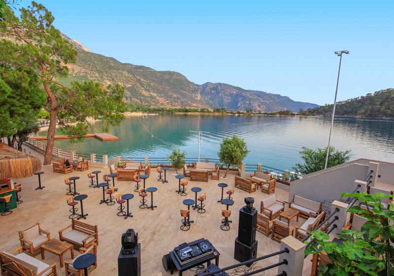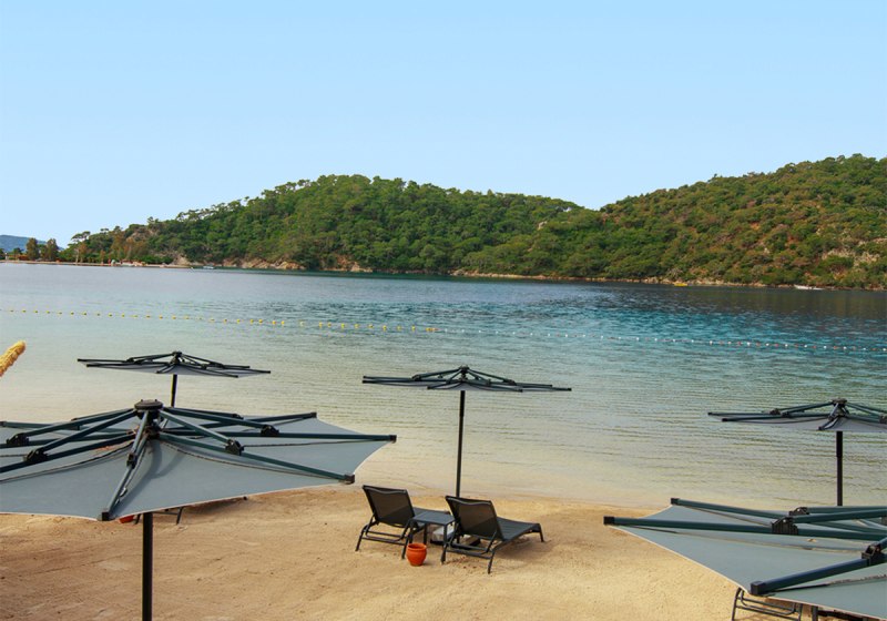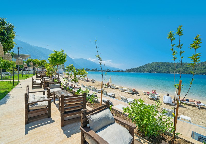 Im Meri Hotel Ölüdeniz erlebt Ihr Ölüdeniz unmittelbar dort, wo die Blaue Lagune an den feinsandigen Lagunenstrand schmiegt. Das Haus liegt im Nationalpark Ölüdeniz und öffnet Euch den Blick auf Wasser, Grün und die sanft geschwungene Bucht. Die Atmosphäre ist entspannt, die Wege kurz, der Garten weitläufig angelegt. Mit Außenpool, Sonnenterrassen und Liegewiese verteilt Ihr Eure Tage zwischen Strand, Wasser und schattigen Ruheplätzen. Highlight: Direkte Lagunenlage mit kurzen Wegen zwischen Strand, Garten und Pool.