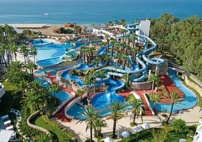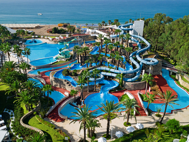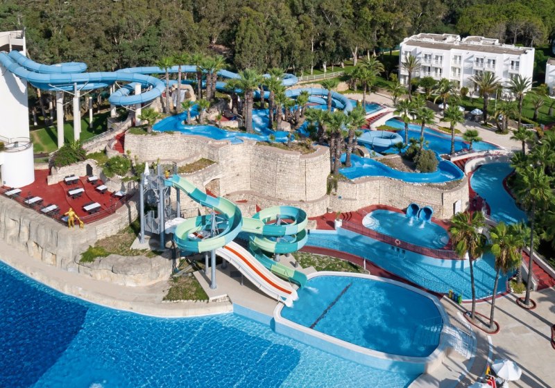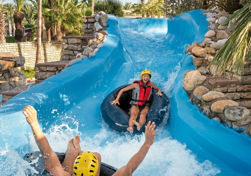 Für große und kleine Momente: Amphitheater, Kino, Konferenzräume, Business-Center, Gartenflächen und TV-Raum. Der Aquapark mit vier Rutschen, Lazy River und Crazy River bildet das dynamische Zentrum; Kinderbecken, Spielräume und überdachter Spielplatz geben Familien Struktur im Tagesablauf.