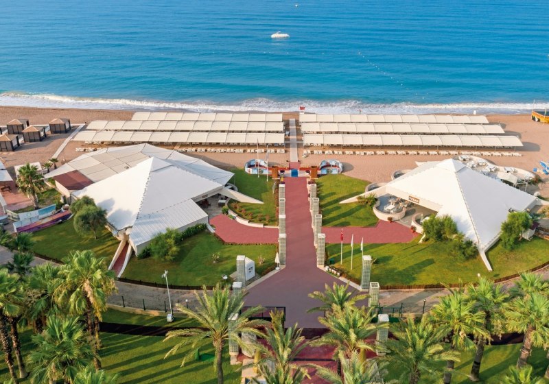 Ihr wohnt in Titreyengöl, direkt am hoteleigenen Sand-/Kiesstrand mit Blauer Flagge. Bis zur antiken Stadt Side sind es etwa sechs Kilometer; vor dem Hotel warten Bus- und Taxiverbindungen. Der Flughafen Antalya liegt rund 70 Kilometer entfernt, Einkaufsmöglichkeiten sind in etwa 3000 Metern erreichbar.