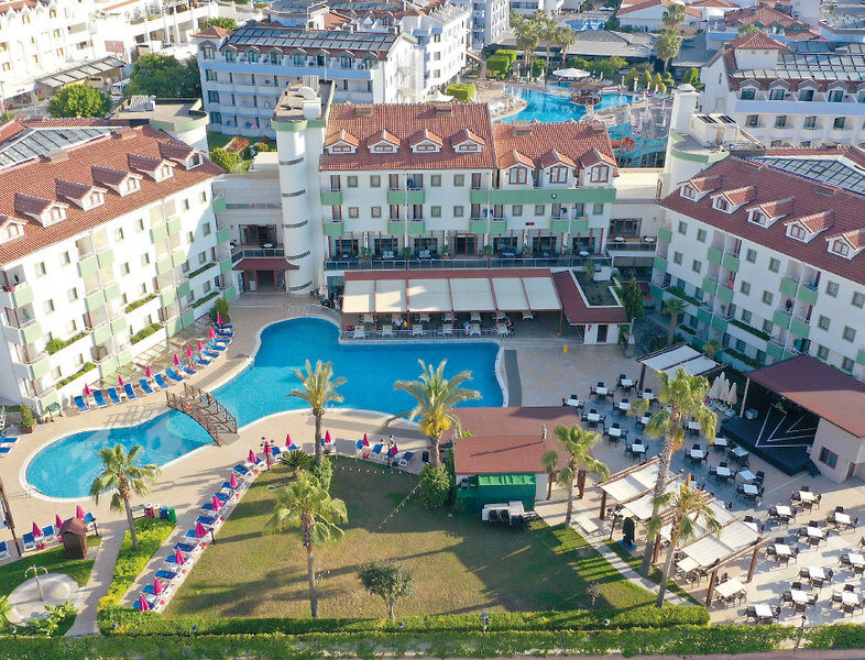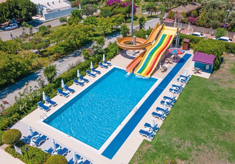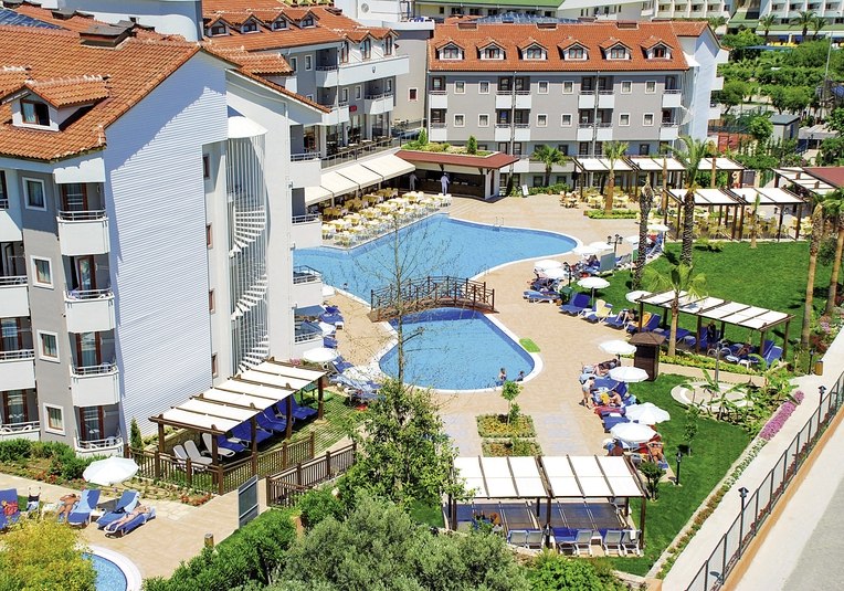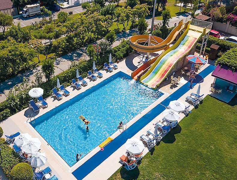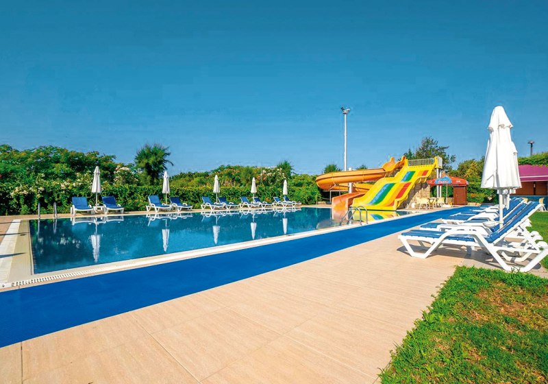 Die Anlage verteilt sich auf mehrere Gebäudeteile mit vier Etagen und Lifts, was kurze Wege schafft. Wer maritime Abwechslung sucht, kombiniert Strandzeit mit dem Funpark am Beach. So entsteht ein kompaktes, gut angebundenes Set-up zwischen Wasser, Terrasse und urbanen Abstechern nach Side.