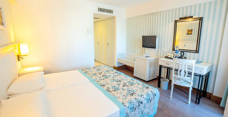 Eure Basis liegt in Evrenseki an der türkischen Mittelmeerküste. Der Sandstrand ist laut Angabe etwa 160 Meter entfernt, der Weg bleibt angenehm kurz. Vor Ort wartet ein hoteleigener Abschnitt mit Beach-Snackbar; Liegen und Schirme sind sowohl am Pool als auch am Strand bereitgestellt, Badetücher bekommt Ihr als Service.