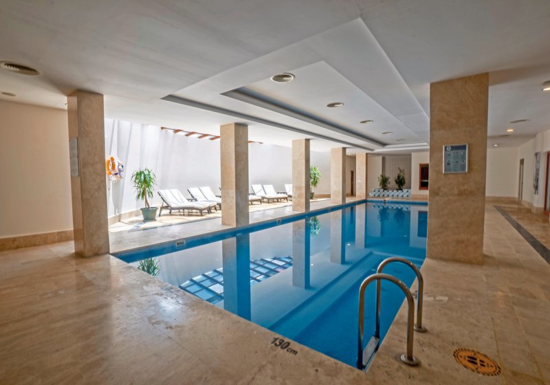 Der Wellnessbereich hält ein ruhiges Gegengewicht zum aktiven Strandtag bereit. Ihr nutzt das Hallenbad für gleichmäßige Bahnen, anschließend Sauna oder das traditionelle Türkische Bad. Massagen und Anwendungen vertiefen die Regeneration, optional ergänzt durch Beauty-Angebote.