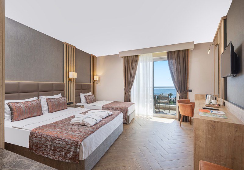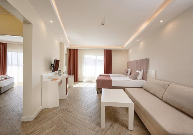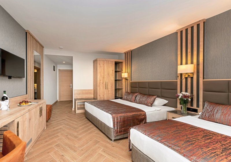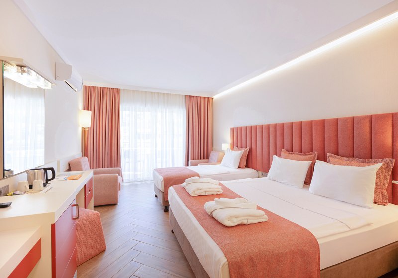 My Home Resort bündelt kurze Wege, einen hoteleigenen Strandabschnitt in 250 Metern Entfernung, eine abwechslungsreiche Poollandschaft mit Rutschen und ein verlässlich bewertetes All-Inclusive. Familien nutzen Miniclub, Familienzimmer und kinderfreundliche Bereiche. Paare wählen Ruhe am Strand, Spa-Rituale und stimmige Abende mit Live-Musik.