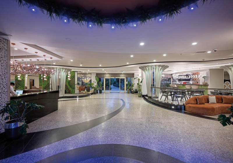 Im My Home Resort erlebt Ihr ein lebendiges Ferienresort mit klarer Struktur und viel Raum für gemeinsame Tage. Vier fünfstöckige Gebäude mit 575 Zimmern rahmen die weitläufige Poollandschaft mit drei Süßwasserpools, separatem Kinderbecken und einem Pool mit drei Wasserrutschen. WLAN im gesamten Hotelbereich ist inklusive, an Pool und Strand liegen Badetücher, Liegen, Auflagen und Sonnenschirme bereit. Die Wege sind kurz: von der Empfangshalle mit Rezeption und Sitzgelegenheiten geht es direkt zu Bars, Terrassen und in den Garten.