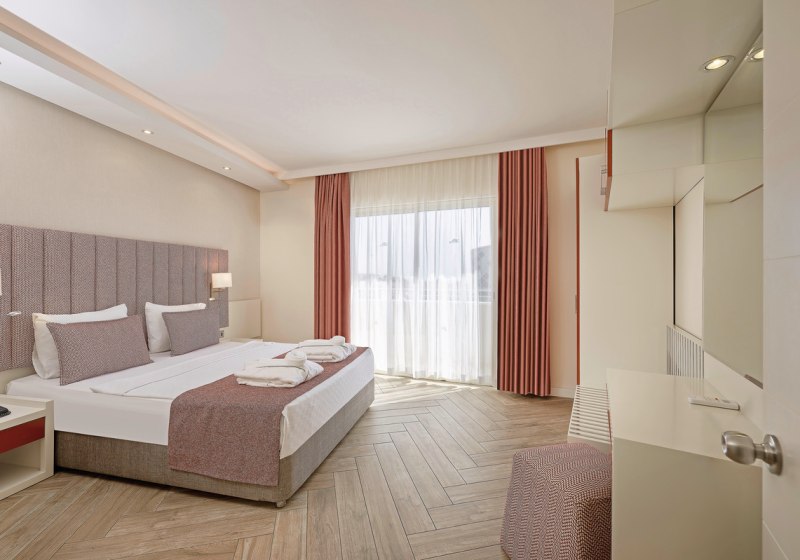 Ihr wählt zwischen komfortablen Zimmern mit Bad/Dusche/WC, Föhn, Sat-TV, Direktwahltelefon, Minikühlschrank, individuell regulierbarer Klimaanlage, Safe, Laminatboden und Balkon. Für Familien bieten die Familienzimmer einen Wohn-/Schlafraum mit zwei Einzelbetten sowie ein separates Schlafzimmer mit Doppelbett und Verbindungstür – übersichtlich und praktisch.