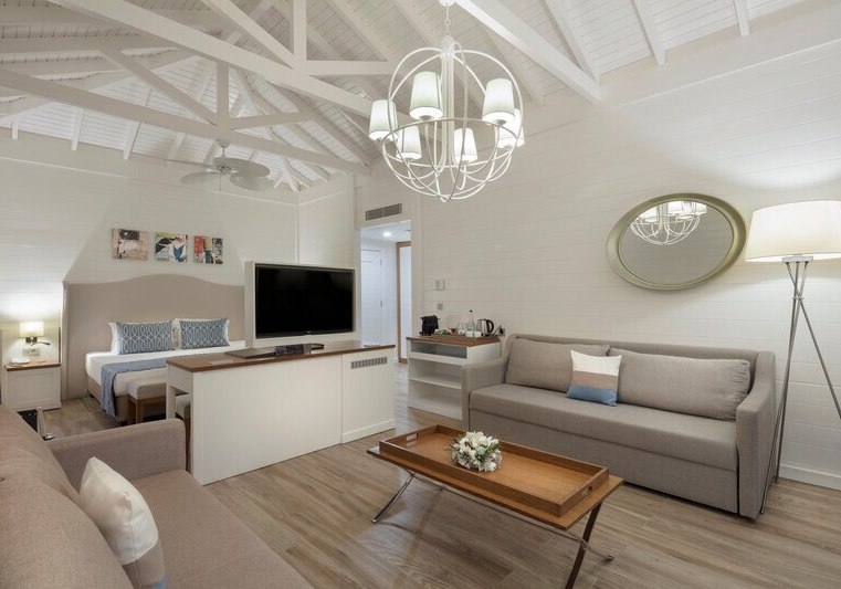 Für Familien gibt es Einheiten mit separatem Schlafzimmer und Wohnraum oder zwei Schlafzimmern; teils mit zwei Bädern. Ausblicke variieren je nach Lage, von Garten bis Pool. Sechs Doppelzimmer sind rollstuhlgerecht umgesetzt. In den Villen profitiert Ihr zusätzlich von Nähe zu separaten Süßwasserpools und einem reservierten Pier.