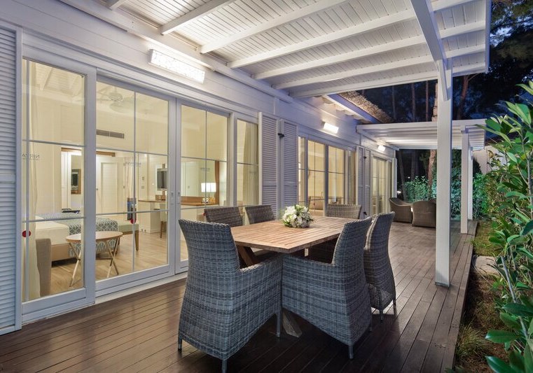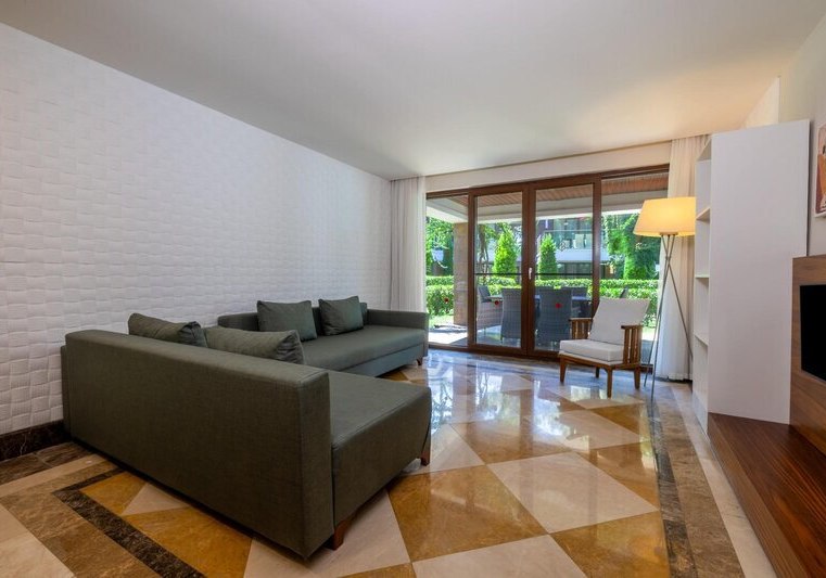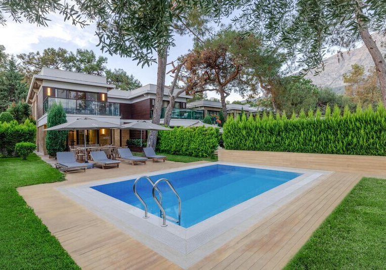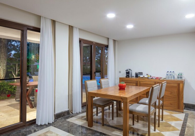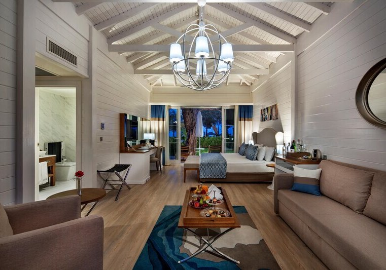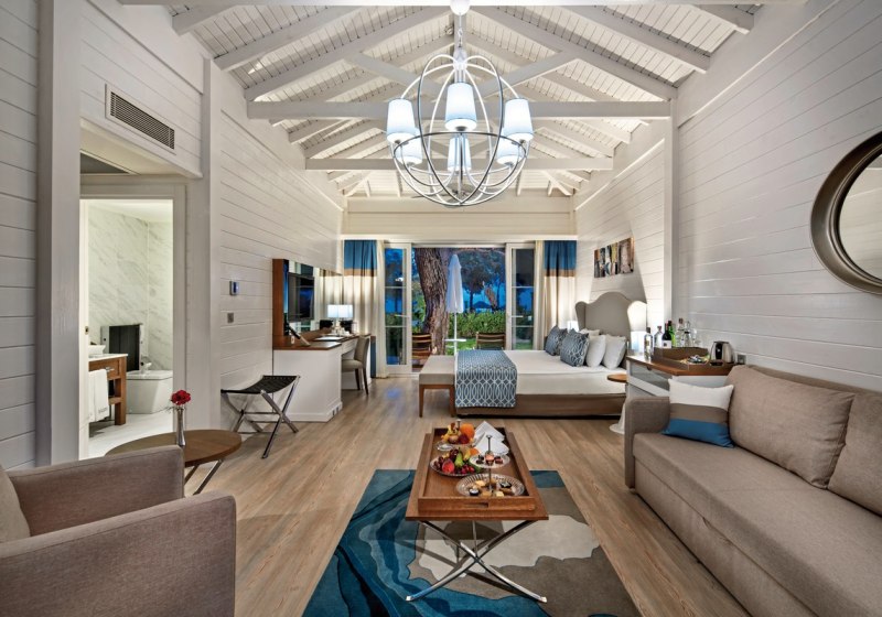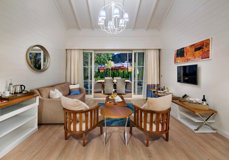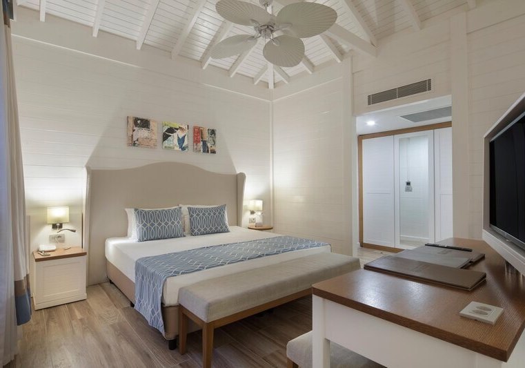 - Direktlage Strand: Sand‑Kiesstrand mit drei Piers, einer exklusiv für Villen.