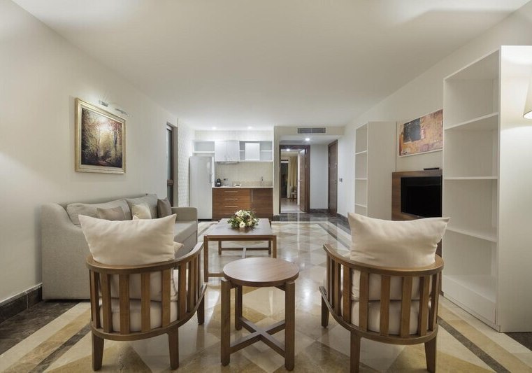 Tagsüber haltet Ihr Euch mit Animation und Aquapark in Bewegung, abends übernehmen Shows, Livemusik und die Diskothek. Der Theatersaal rahmt professionelle Programmpunkte, Karaoke bringt lockere Stimmung. Wer es ruhiger mag, weicht in die Gartenbereiche, Bars oder die Lobby aus. Highlight: Vielfältiges Tagesprogramm plus Abendshow und Club.
