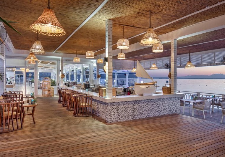 - Beach & Bar: Zwei Strandbars, Pool‑Snackbar und Beachclub.