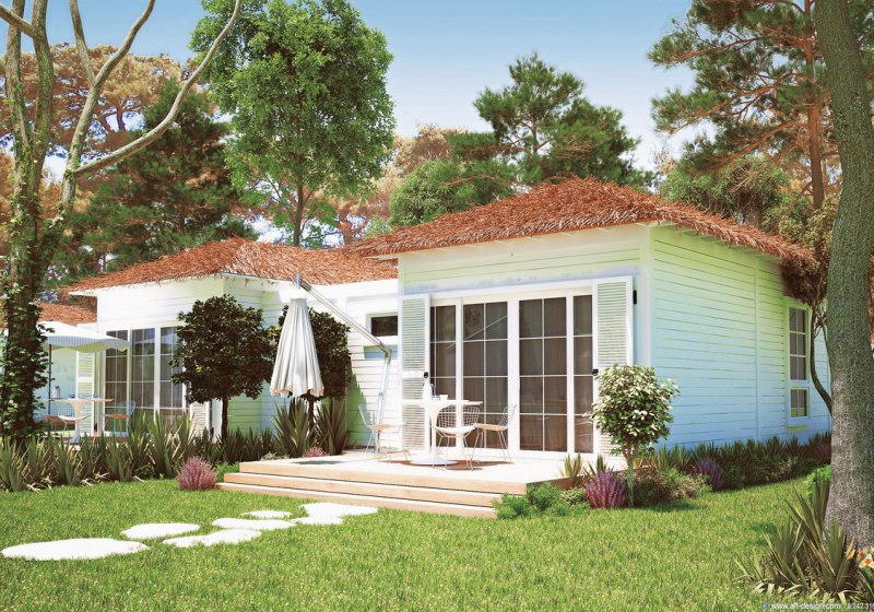 - Drei Stege: Strand mit drei Piers, einer für Villengäste.