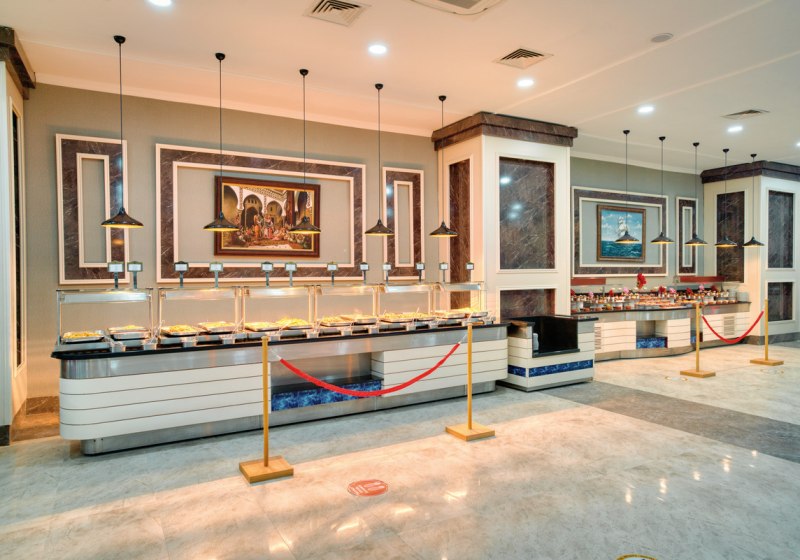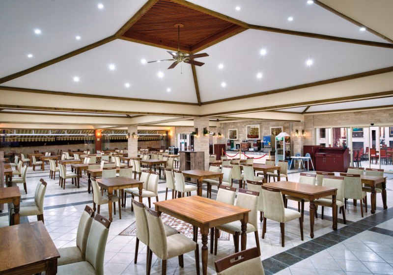 Im Hauptrestaurant mit Terrasse wählt Ihr aus reichhaltigen Buffets zum Frühstück, Mittag- und Abendessen. All Inclusive umfasst alkoholfreie und alkoholische Getränke, dazu Snacks und spezielle Angebote. Diätgerichte und Kindermenüs ergänzen das Angebot sinnvoll.