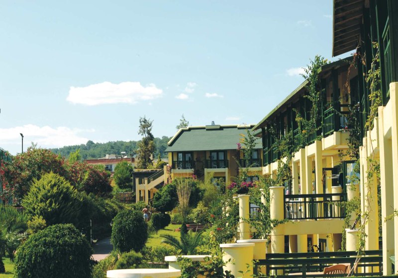 Das Resort verteilt 358 Zimmer auf Haupt- und Nebengebäude mit je drei Etagen. Die großzügige Lobby mit Rezeption, Geschäfte, Friseur und mehrere Bars strukturieren die Gemeinschaftsbereiche. WLAN steht im Hotel und in den Zimmern zur Verfügung, Konferenz- und Banketträume ergänzen die Infrastruktur.