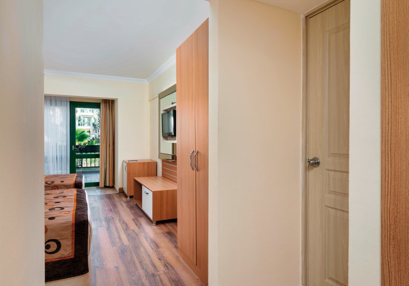 Familien wählen Zimmer mit separatem Kinderzimmer hinter einer Schiebetür, zwei Kinderbetten sowie eigenem TV und eigener Klimaanlage. Für Aussichtsliebhaber ist seitlicher Meerblick buchbar. Bodenbeläge aus Laminat oder Fliesen vermitteln eine klare, pflegeleichte Anmutung. Highlight: Familienzimmer mit getrenntem Kinderbereich und eigener Klimasteuerung.