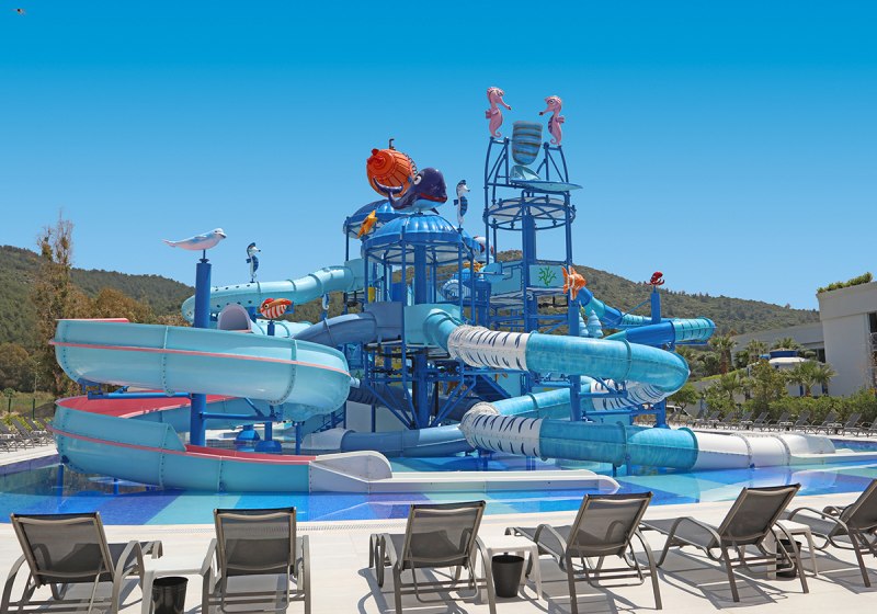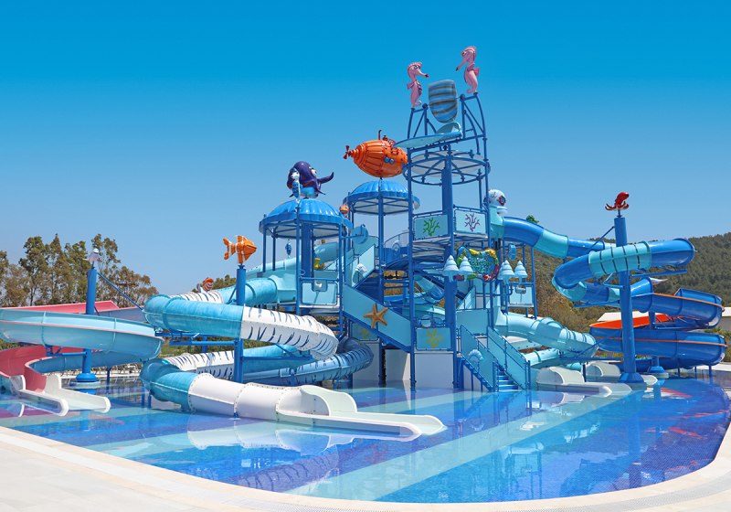 - Wasserpark: Rutschen und Kinderbecken mit festen Öffnungszeiten 10–17 Uhr.