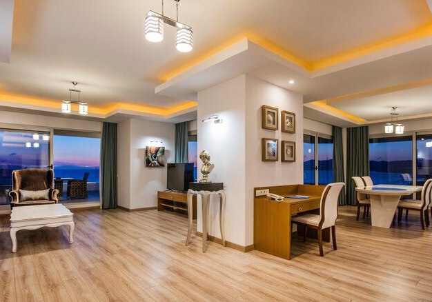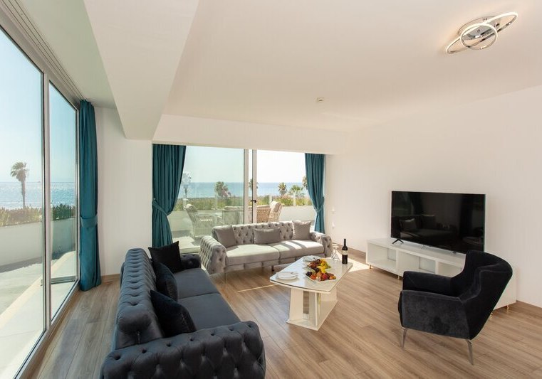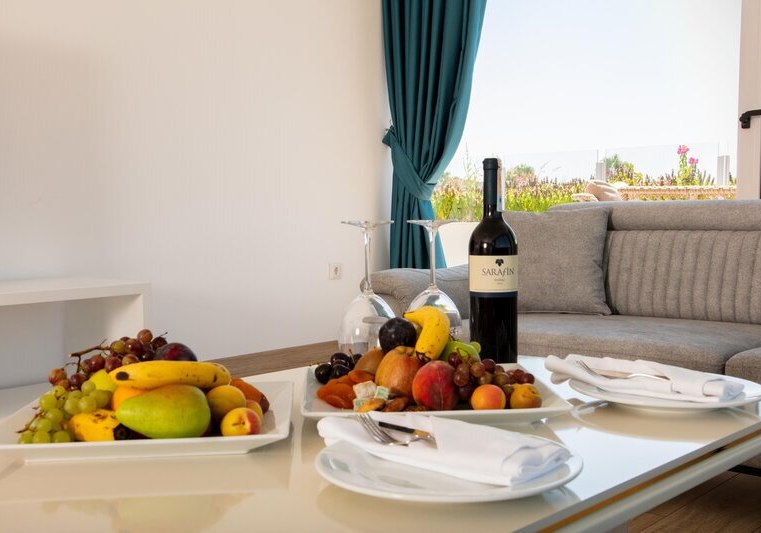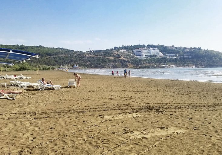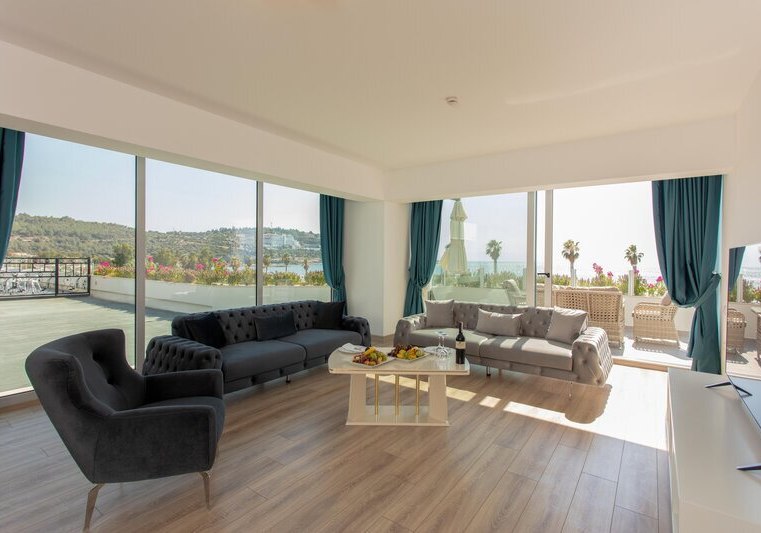 Direkt am Sandstrand und zugleich verkehrsgünstig: Eine Bushaltestelle (Selçuk – Kuşadası) liegt etwa 50 Meter entfernt, ÖPNV-Anbindung in rund 20 Metern. Das touristische Zentrum erreicht Ihr nach etwa 5 Kilometern, das Stadtzentrum von Kuşadası nach rund 8 bis 12 Kilometern.