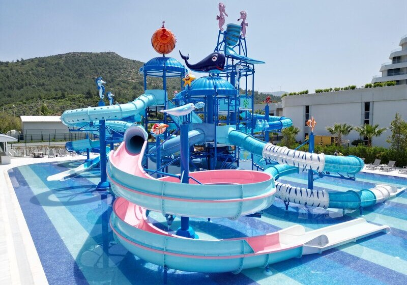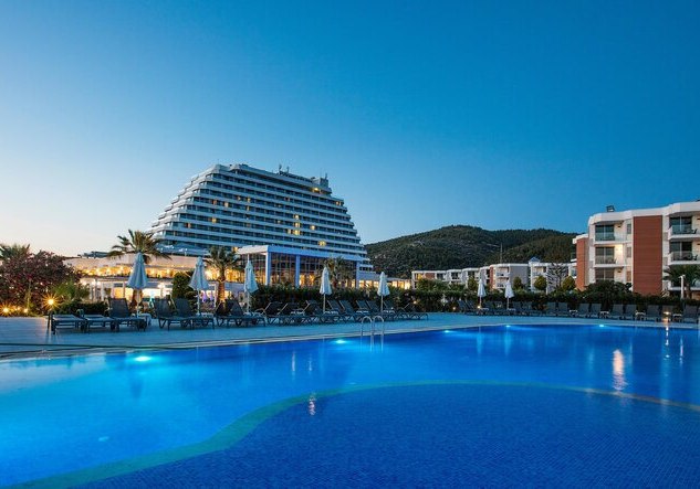 Im Palm Wings Ephesus Beach Resort trefft Ihr auf eine weitläufige Ferienanlage, die direkt am Sandstrand liegt und mit modernisiertem Auftritt seit 2017 auftritt. Breite Poolflächen mit Wasserrutschen, großzügige Liegebereiche und klare Linien prägen die Atmosphäre. Familien, Strandreisende und aktive Paare finden hier Raum für entspannte Tage und lebhafte Abende.