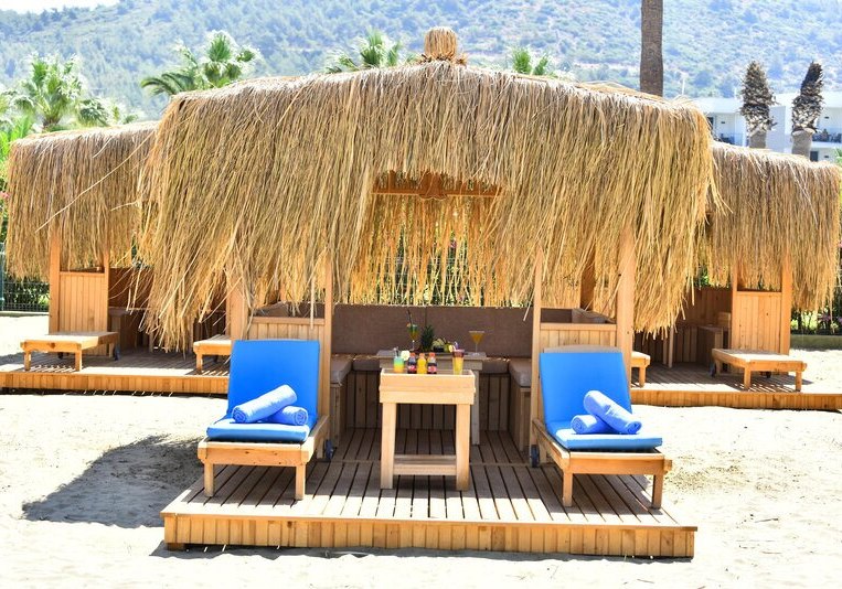 - Strandkomfort: Liegen, Schirme und Strandpavillons direkt an der Küste.