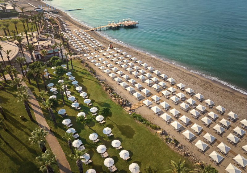 Ihr residiert in Belek direkt am hoteleigenen Sandstrand und erreicht das Zentrum nach rund 700 Metern. Zwei Strandbars, Pavillons und kurze Wege bestimmen den Tagesrhythmus am Meer. Der Flughafen Antalya liegt etwa 35 Kilometer entfernt, die Anreise dauert je nach Verkehr rund 30 bis 45 Minuten. Für Abstecher in den Ort stehen Bus und ÖPNV mit kurzen Wegzeiten bereit.