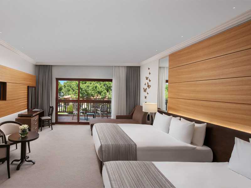 • Klimaanlage • Haartrockner • Minibar (kostenfrei) • Safe (kostenfrei) • Kaffee-/Teezubereiter • Fernseher • rollstuhlgerechte Zimmer (auf Anfrage) • WiFi (kostenfrei) • Balkon oder Terrasse • Gartenblick • Babywanne (kostenfrei) • Wasserkocher • Schallisolation • Balkon (je nach Zimmerkategorie) • Schlafsofa