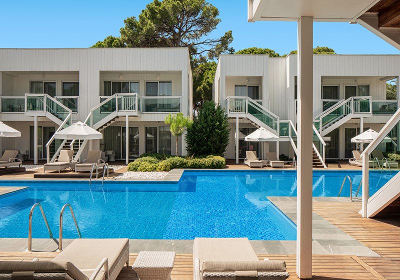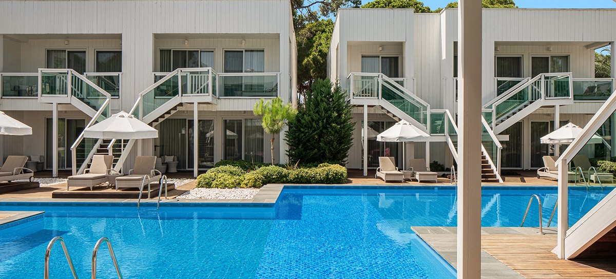 Papillon Zeugma Relaxury empfängt Euch in einem Pinienwald direkt am Sandstrand. Die Anlage kombiniert ein 8-stöckiges Hauptgebäude mit sieben zweistöckigen Nebengebäuden und schafft so ein angenehmes Gefühl von Weite und Struktur. Familien und Strandreisende finden hier klare Stärken: kurze Wege, viele Angebote und durchdachte Services.
