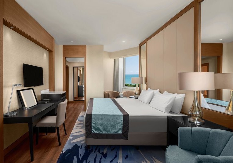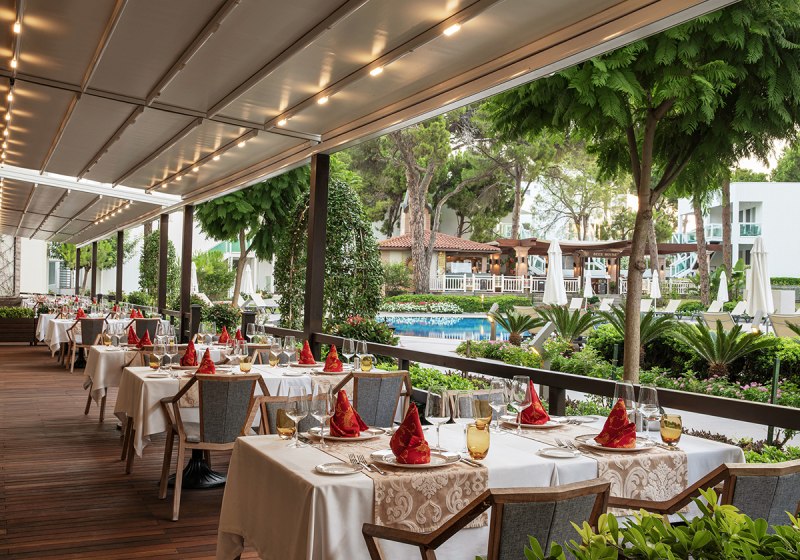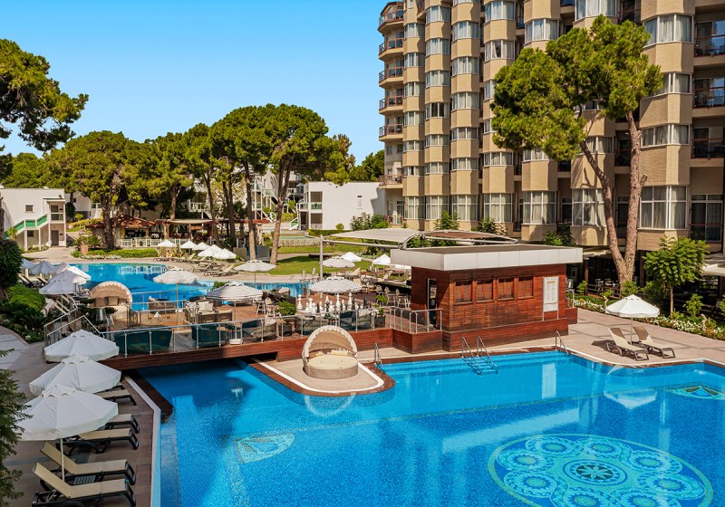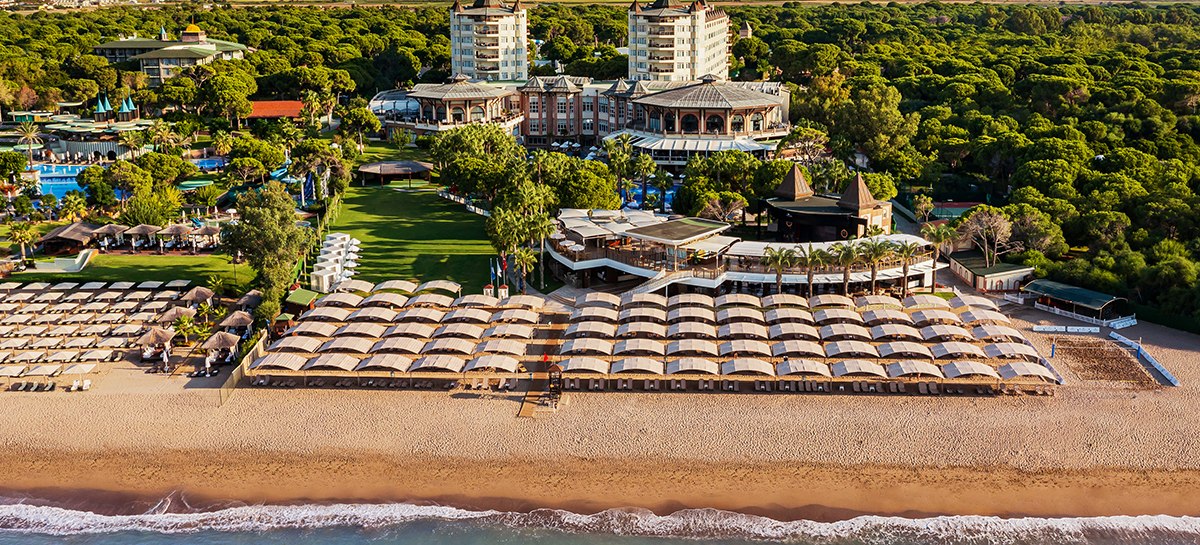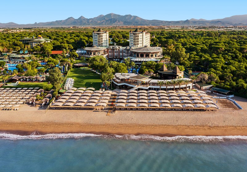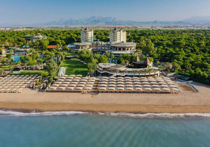 Die Lage spricht für sich: direkt am Sandstrand, eingebettet in einen Pinienwald. Bis Belek sind es etwa 4 km, nach Antalya rund 40 km. Taxi und Minibusse stehen am Hotel bereit, sodass Ihr Ausflüge und Transfers flexibel plant und die Umgebung bequem erreicht.