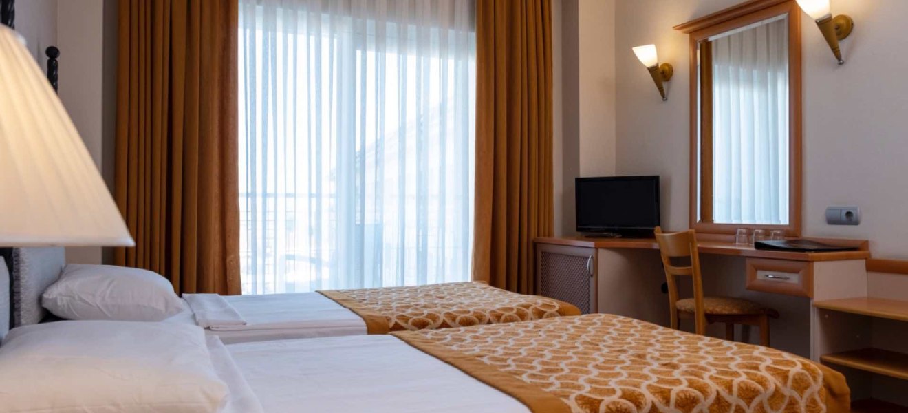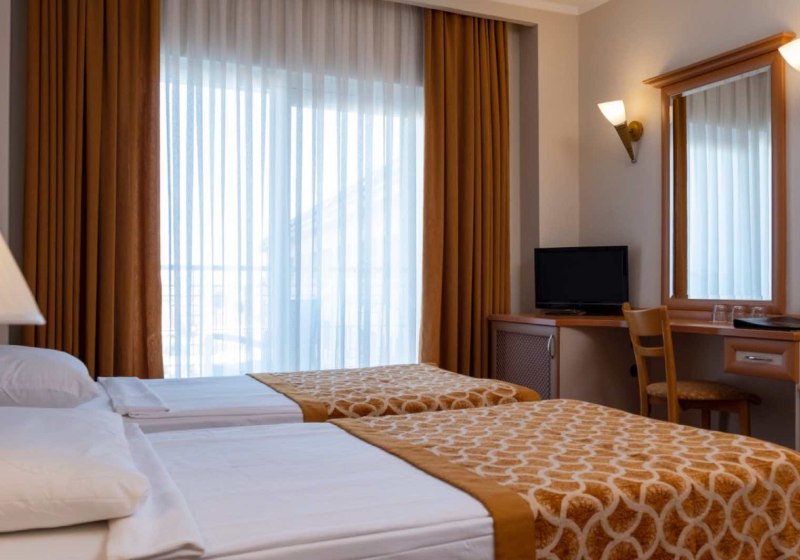 Ihr wohnt in Çamyuva, nur etwa 250 Meter vom hoteleigenen, rund 80 Meter breiten Sand-/Kiesstrand entfernt. Die Lage verbindet Strandnähe mit guter Anbindung: Öffentliche Busverbindungen und Taxis liegen in Reichweite, Kemer ist etwa 5 Kilometer entfernt. Antalya erreicht Ihr nach ungefähr 50 Kilometern, der Flughafen Antalya liegt bei etwa 65 Kilometern.