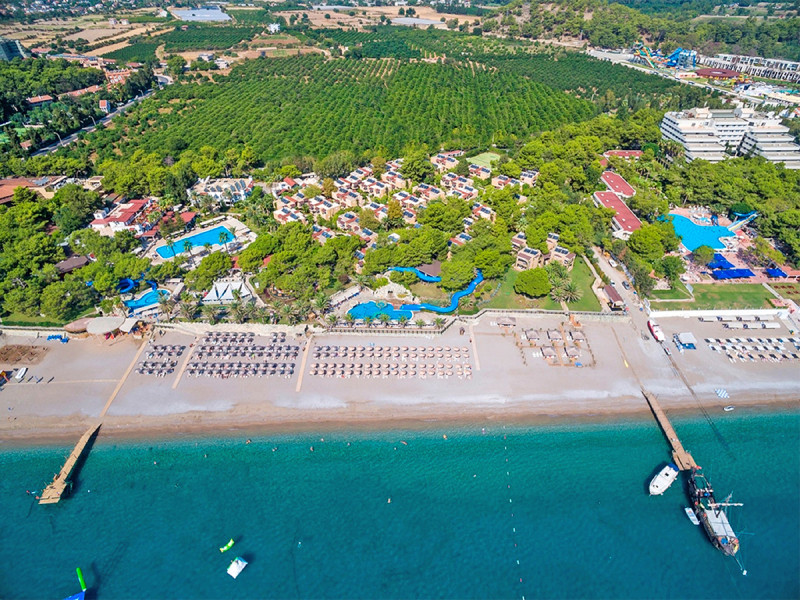 Im Pirate's Beach Club verbindet Ihr Strandnähe mit einer klar strukturierten Resortwelt. Die Anlage liegt direkt an einem 250 Meter langen Privatstrand in Tekirova und richtet sich an Strandurlauber und Familien. Mehrere Pools, Gartenflächen und lebendige Gemeinschaftsbereiche geben Eurem Tag Rhythmus, vom ersten Bad bis zum Abendprogramm.