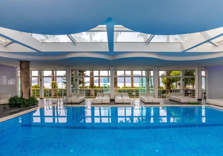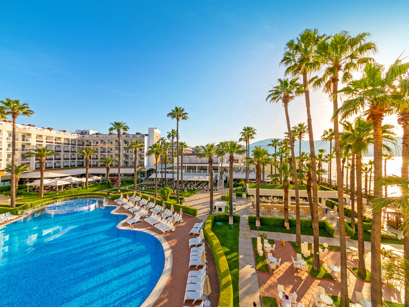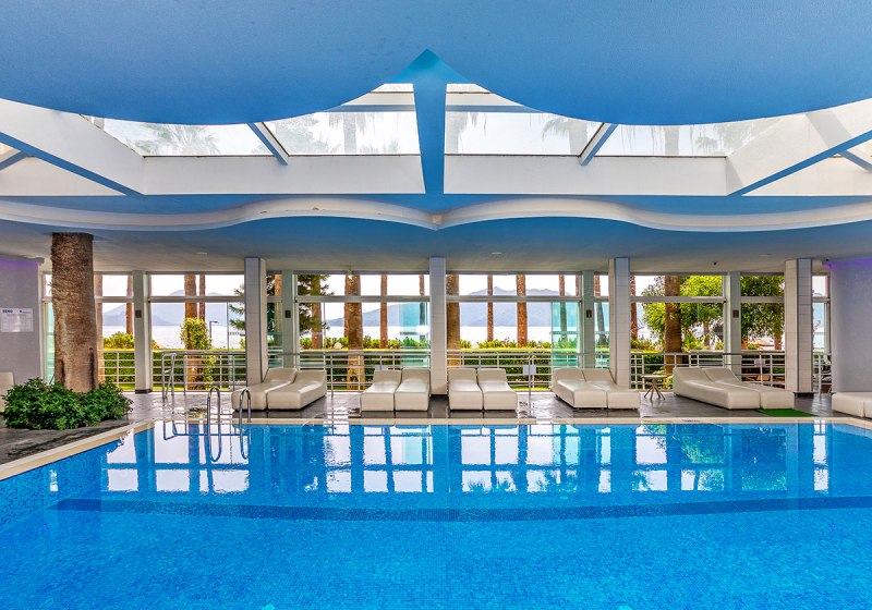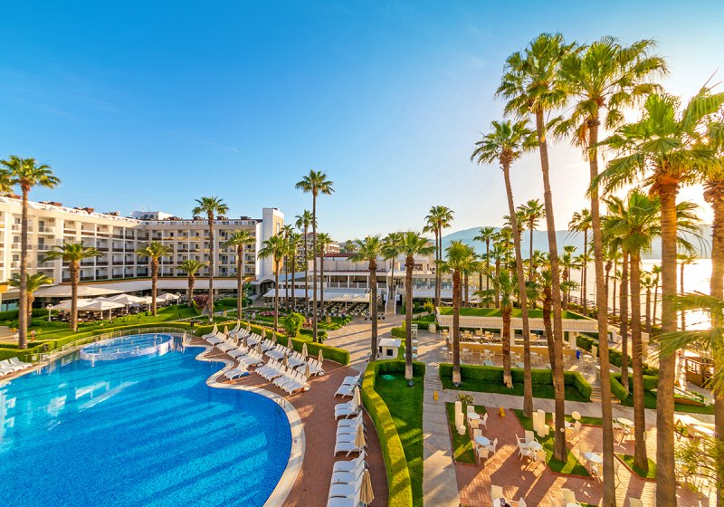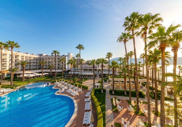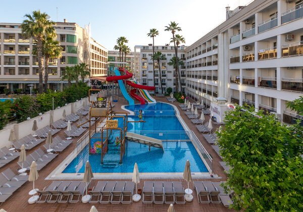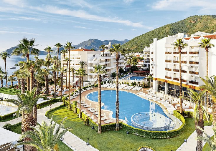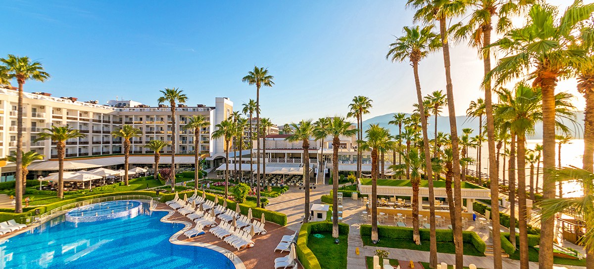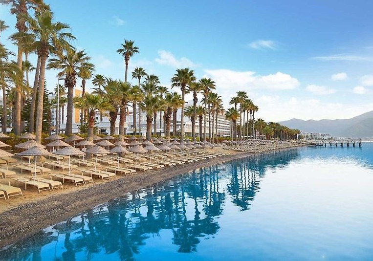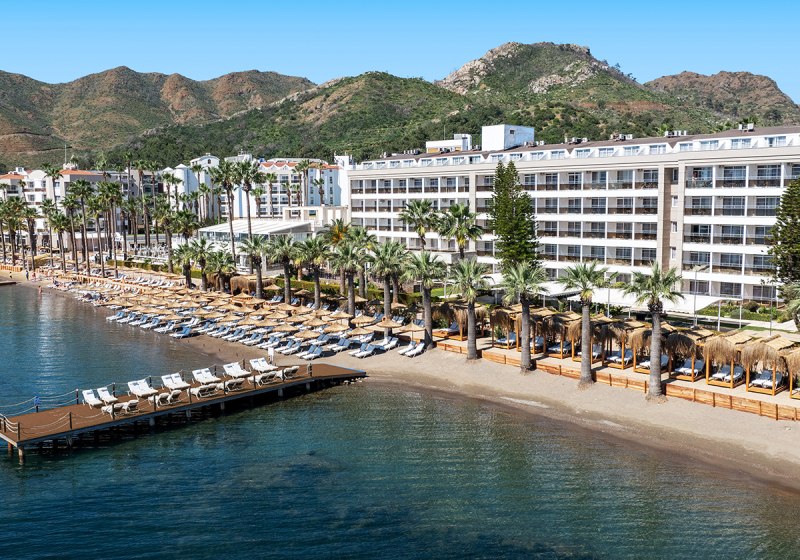 Das Prime Beach Hotel kombiniert direkte Strandlage, kurze Wege nach Marmaris und ein durchdachtes All‑Inclusive‑Angebot. Mit zwei Aussenpools, Kinderbecken und drei Wasserrutschen gelingen entspannte Tage am Wasser in den Ferien.