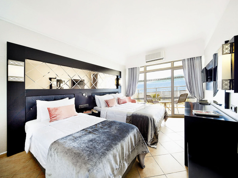 • Klimaanlage • Balkon (je nach Zimmerkategorie) • Haartrockner • Minibar • Safe • Meerblick (je nach Zimmerkategorie) • Kaffee-/Teezubereiter • Terrasse • Fernseher (Sat-TV) • rollstuhlgerechte Zimmer (auf Anfrage) • WiFi (kostenfrei)