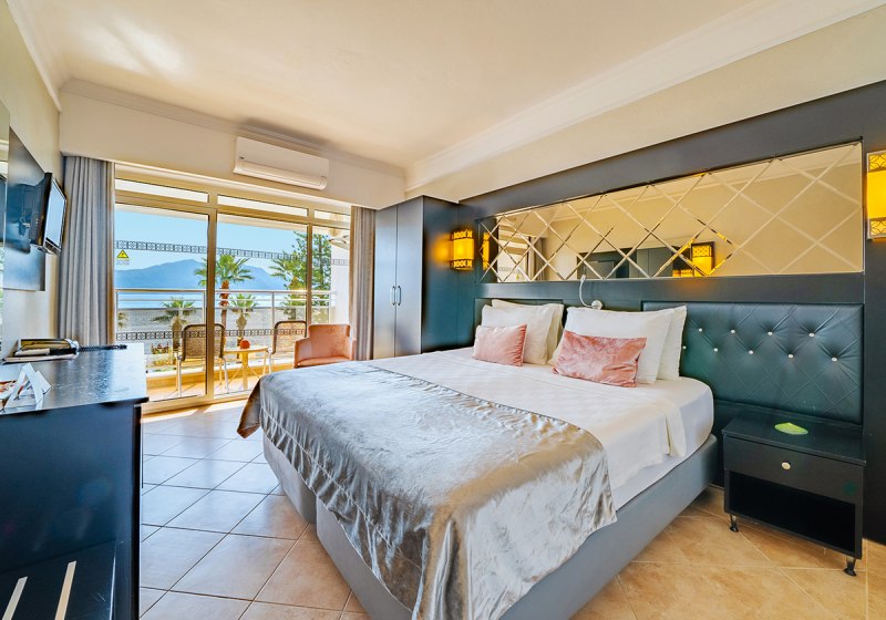Ihr wohnt in klimatisierten Doppelzimmern mit WLAN, TV, Telefon, Safe und Minibar. Badezimmer mit Dusche, WC und Föhn, dazu Balkon, teils mit Meerblick. Zimmer in erster Strandreihe sind verfügbar. Highlight: Balkonmomente mit optionalem Meerblick.