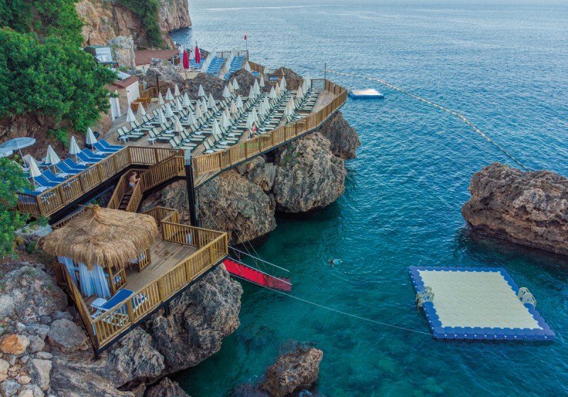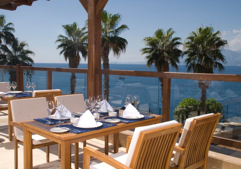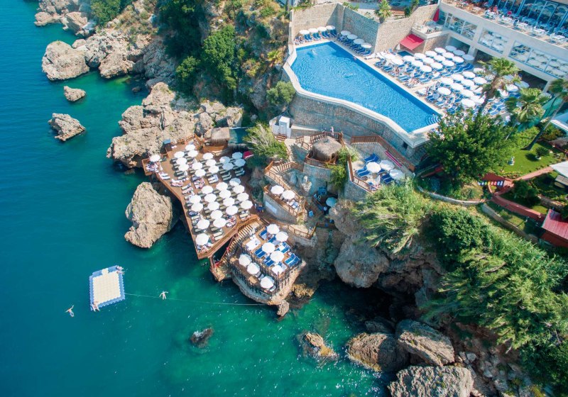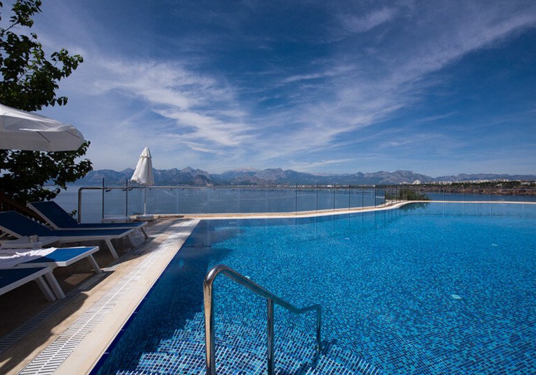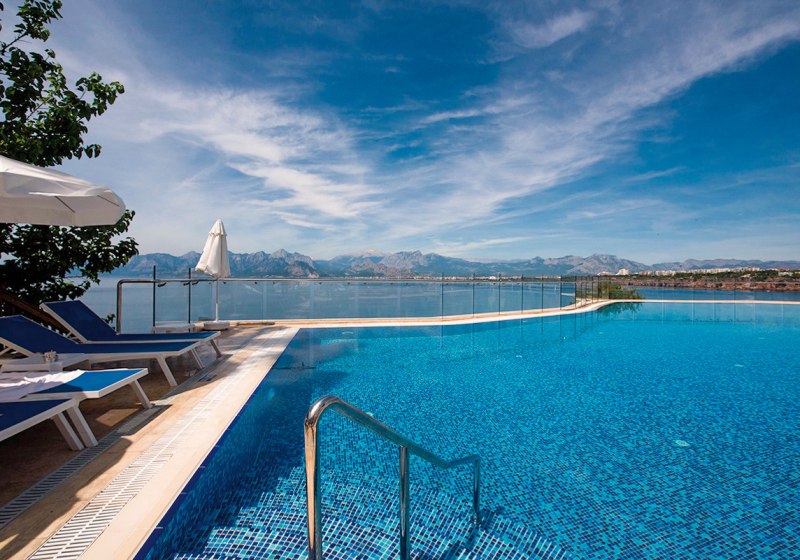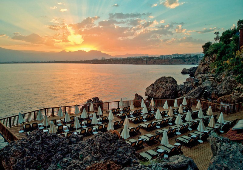 Die Adresse ist Programm: Auf einem Felsplateau an der Bucht von Antalya genießt Ihr die Ruhe am Wasser und schaut auf Meer und Taurusgebirge. Gleichzeitig erreicht Ihr das Zentrum in wenigen Minuten zu Fuß. Öffentliche Bus- und Taxiverbindungen liegen nah, der Flughafen ist etwa 16 Kilometer entfernt.