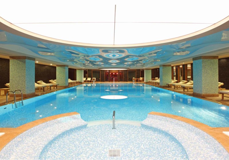 - Großzügiges Spa: Wellnesscenter mit ca. 2.700 m², Hamam und Hallenbad.