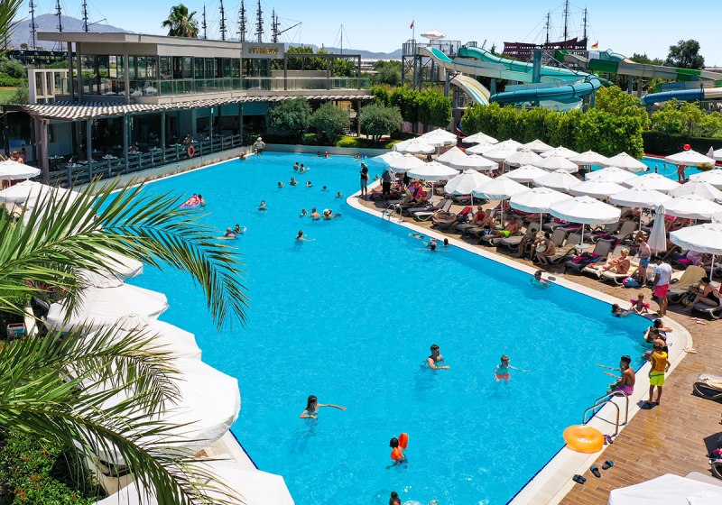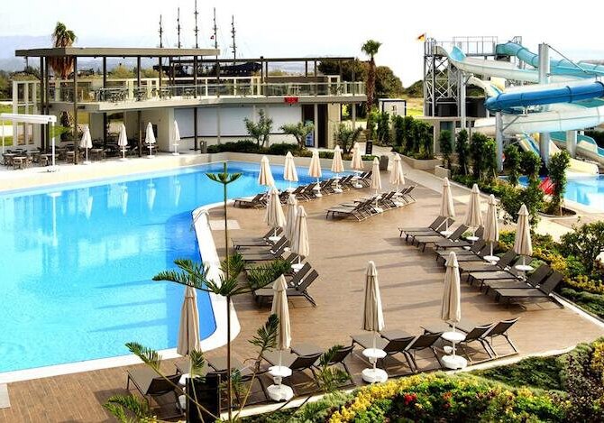 - Weitläufige Pools: Zwei Außenpools, Rutschen und separate Kinderbereiche.