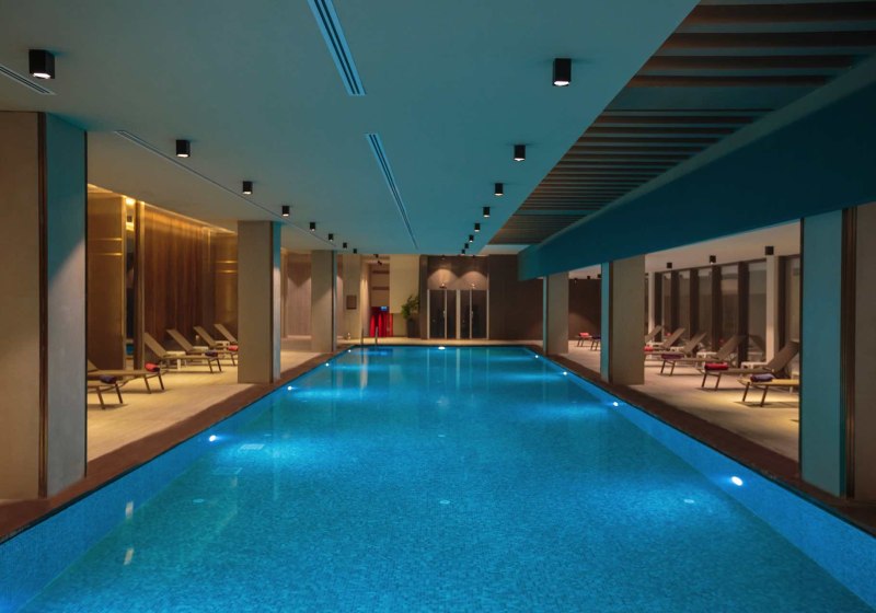 - Spa: Hamam, Sauna, Dampfbad und Whirlpools bilden den Kern.