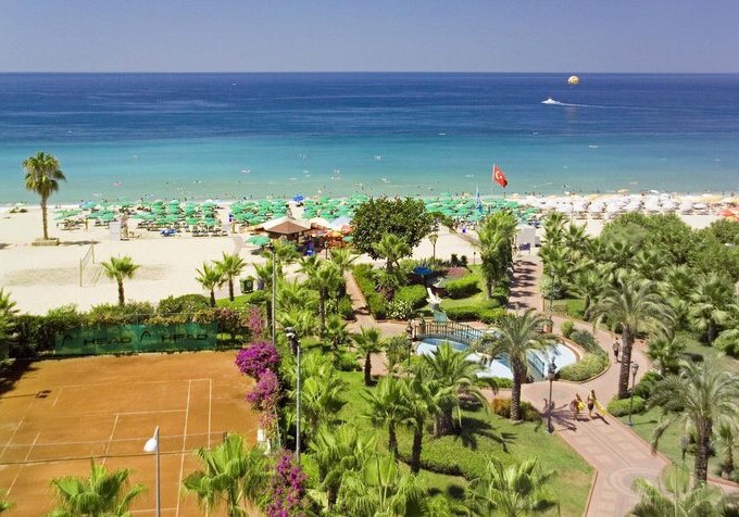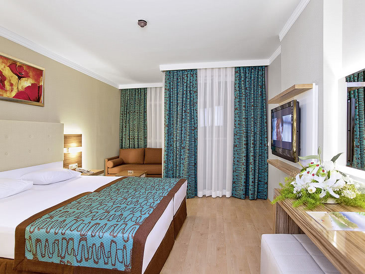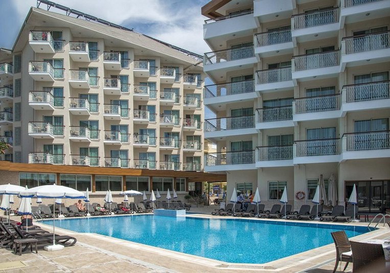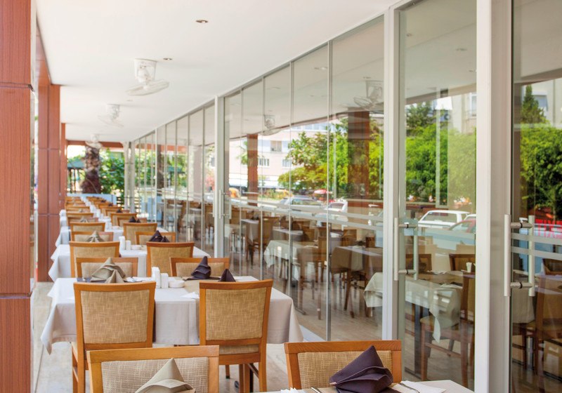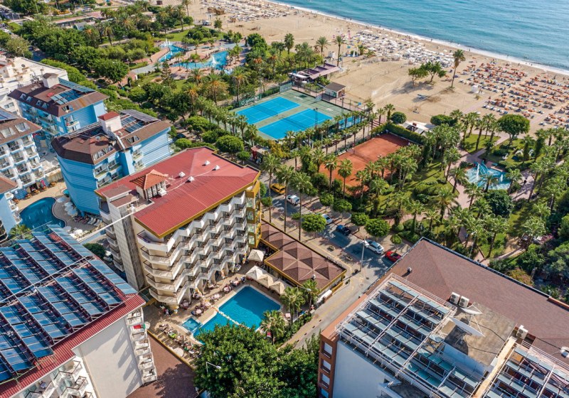 Im Riviera Hotel & Spa wohnt Ihr in drei verbundenen Gebäuden mit fünf Etagen, nur durch eine Straße vom Kleopatra-Strand getrennt. Die Stimmung ist entspannt und klar strukturiert: kurze Wege, helle Bereiche, ein Außenpool mit Kinderbecken und die Sonnenterrasse als Treffpunkt. Highlight: Direkte Strandnähe erleichtert Eure Tage am Meer.