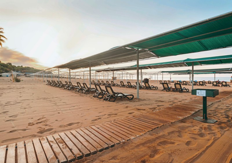 - Nahe am Strand: Liegen und Schirme am Strand ergänzen den Pooltag.