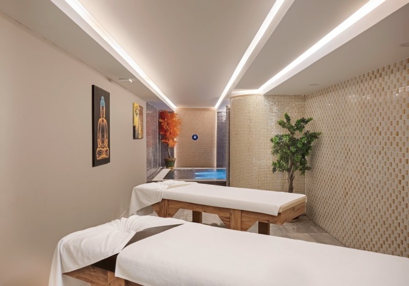 Wellness• Anti-Aging (gegen Gebühr) • Ayurveda (gegen Gebühr) • Beautyfarm (Behandlungsräume, gegen Gebühr) • Hamam (kostenfrei) • Massage • Sauna • Spa • Dampfbad (kostenfrei) • Whirlpool • Aromatherapie (gegen Gebühr) • Cleopatrabad (gegen Gebühr) • Schönheitssalon