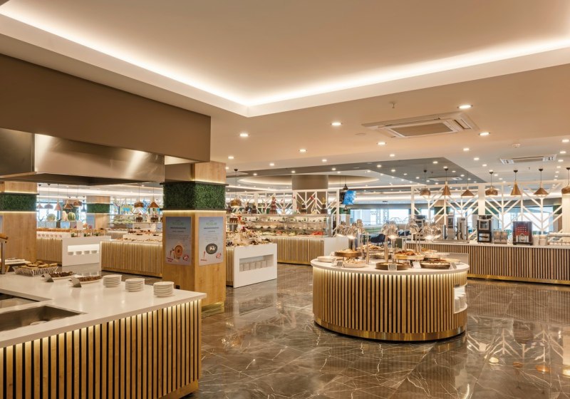 Mit All-Inclusive Plus bleibt Ihr kulinarisch flexibel: ein großzügiges Buffetrestaurant mit Live-Kochen, dazu zwei À-la-carte-Optionen für fokussierte Abende. Internationale Marken bei Getränken unterstreichen den Qualitätsanspruch, Diätgerichte und Babynahrung erweitern die Auswahl. Die Lobbybar fungiert als ruhiger Treffpunkt, während an Pool und Strand schnelle Snacks Euren Tag begleiten.