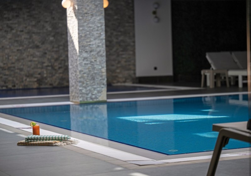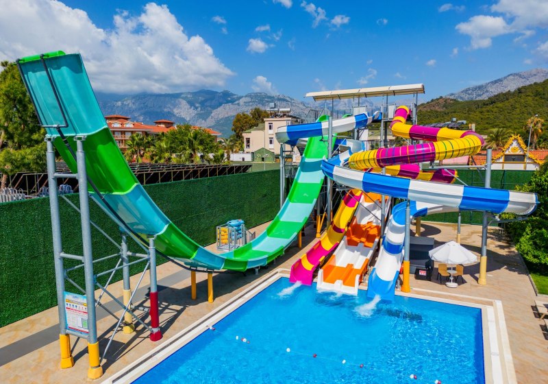 - Poolszenerie: Süßwasserpool, Kinderbecken und Rutschenpool für Abwechslung.
