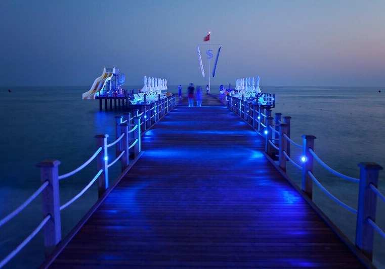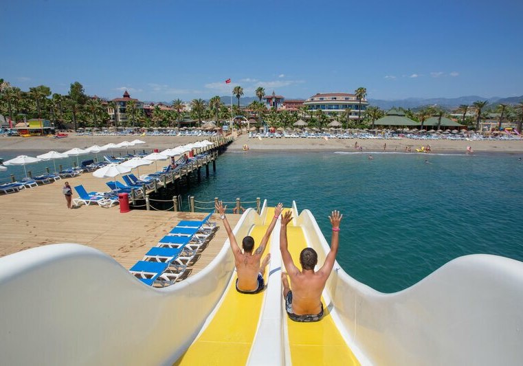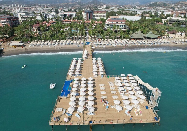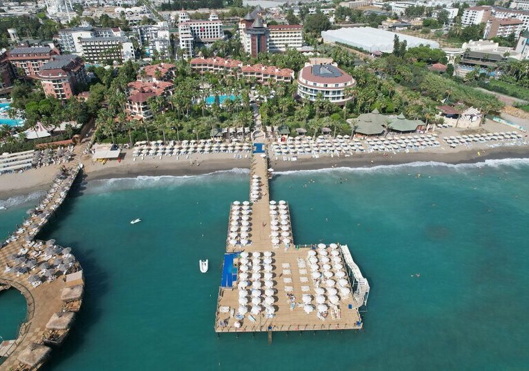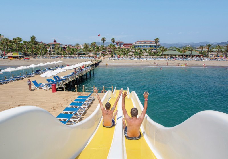 Für Events und Meetings stehen ein Theatersaal sowie Konferenzräume mit Technik bereit. Draußen warten Pools mit separatem Kinderbecken, am Strand kostenfreie Liegen, Schirme, Auflagen und Handtücher. Der Steg mit Wasserrutsche führt direkt ins Meer. Highlight: Direkter Strandzugang mit Steg und durchdachtem Poolbereich.